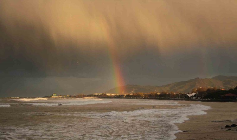 Ordu’da akşam saatlerinde deniz üzerinde gökkuşağı ve bulutlar adeta renk cümbüşü oluşturdu.
