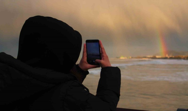 Akşam saatlerinde deniz üzerinde beliren gökkuşağı ve bulutlar, günbatımı ile birleşince ortaya adeta görsel bir şölen çıktı. Ordu’nun deniz ve şehir manzarası ile bütünleşen ve yaklaşık 5 dakika süren renk şölenini yakalamak isteyen vatandaşlar manzarada fotoğraf çekindi. Vatandaşlar böyle görüntülere çok sık rastlanmadığını söylediler.