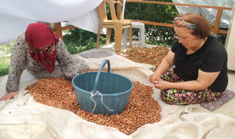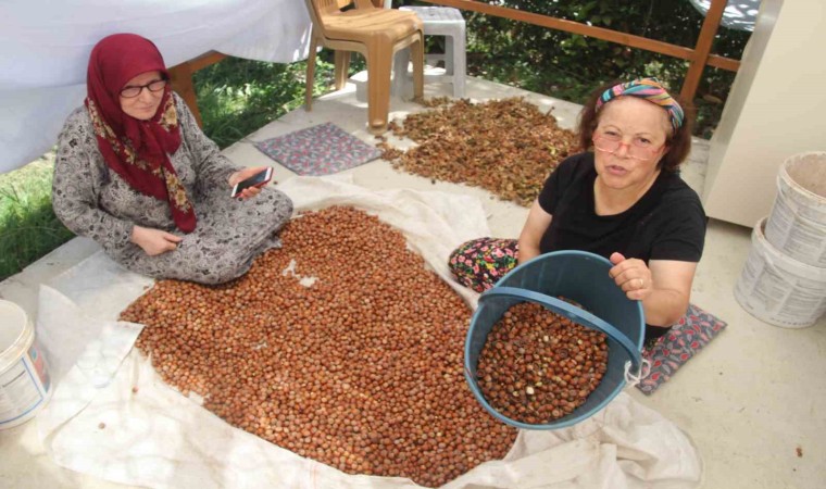30 dereceyi bulan sıcağın altında fındıklarını defalarca seçiyorlar