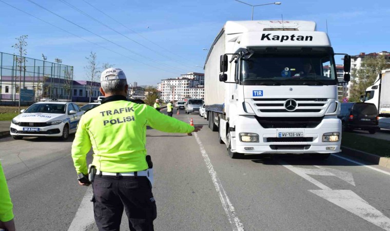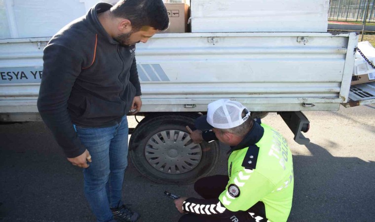 Ordu’da şehirlerarası yük ve yolcu taşıyan ticari araçlar için zorunlu kış lastiği uygulaması kapsamında denetim yapıldı.