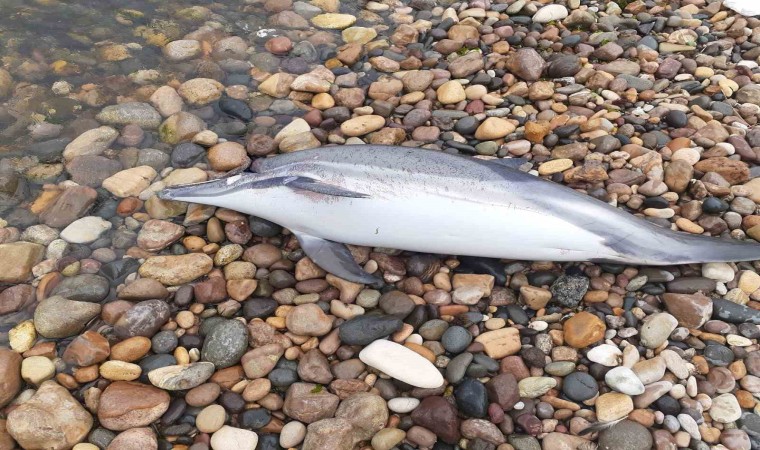Ordu’nun Ünye ilçesinde yaklaşık 1,5 metre uzunluğunda ölü yunus balığı sahile vurdu.