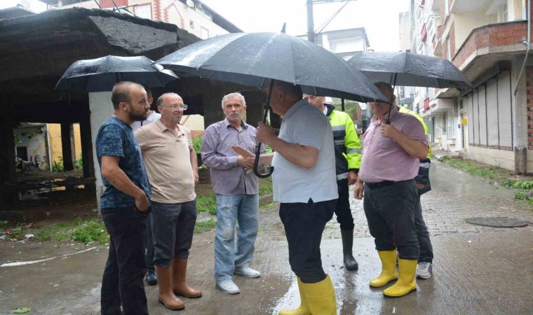 Aşırı yağışların ardından saha çalışmalarını yerinde inceleyen Ünye Belediye Başkanı Hüseyin Tavlı, “Sabah saat 8 sıralarında başlayan yağmur. daha da şiddetlenmesiyle belli bölgelerde sel ve su taşkınlarına neden olmuştur. Vatandaşlarımızdan ricamız mazgal ağızlarına poşetlerin konulmaması, mazgalları tıkayacak bir cismin orada bulunmamasına mutlaka özen göstermemiz gerekir. Selle beraber olabilecek bir su taşkınrıyf özellikle poşet türü malzemeler suların gitmesini engelliyor. Sabahtan itibaren karton ve poşetlerin temizliğini yapıyoruz. Vatandaşlarımızdan bunlara duyarlı olmalarını istirham ediyorum. Şu ana kadar ilçemizde herhangi bir olumsuzluğa rastlamadık. Sahada ekiplerimiz teyakkuzda ve çalışmalarını sürdürüyor. Kırsal bölgelerde şimdiye kadar bir şikâyet gelmedi ancak yollarda ufak çapta sorunlar olduğu gelen bilgiler arasındadır” dedi.