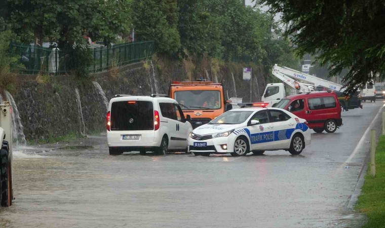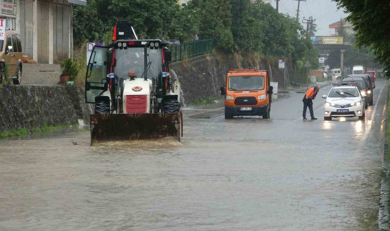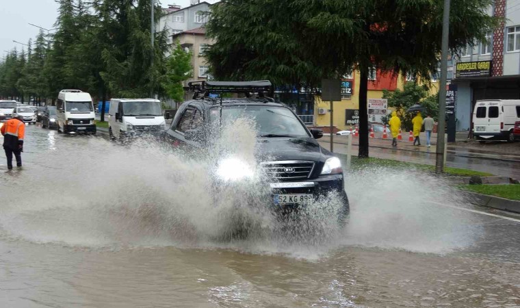 Ordu’da öğle saatlerinde başlayan ve etkisini sürdüren sağanak, sürücülere ve vatandaşlara zor anlar yaşattı, su birikintisinin olduğu yol geçici olarak ulaşıma kapandı.