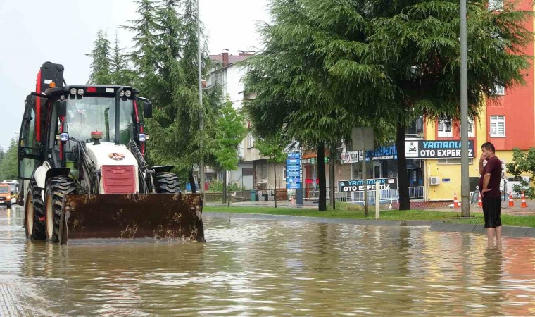 Vatandaşlar, birden etkili olan sağanak sonrası yolda su birikintisinin olduğunu, yağışın devam etmesiyle birlikte yolun tamamen ulaşıma kapatıldığını söylediler.