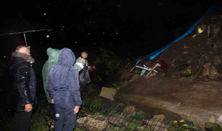 Dün gece saatlerinde Perşembe ilçesine bağlı Kaleyaka Mahallesi Yumrutaş Sokak’ta yaşayan Yılmaz ailesinin evlerinin taş istinat duvarı, sağanak sonrası yaşanan heyelan nedeniyle yıkıldı.