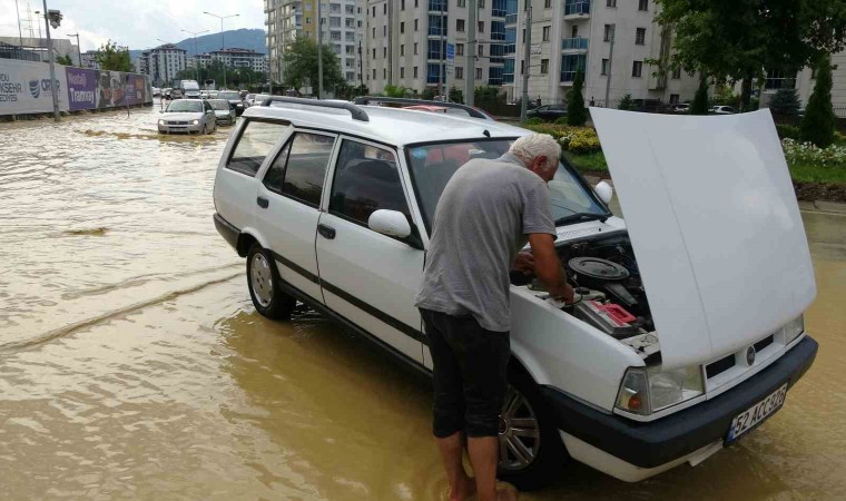 Su birikintisinin olduğu noktadan geçerken aracı arıza yapan Cemal Cebeci, “Aniden yağmur bastırdı. Sudan geçerken aracım stop etti. Ya kendi imkanlarımız ile ya da çekici vasıtası ile buradan kaldıracağız” diye konuştu.