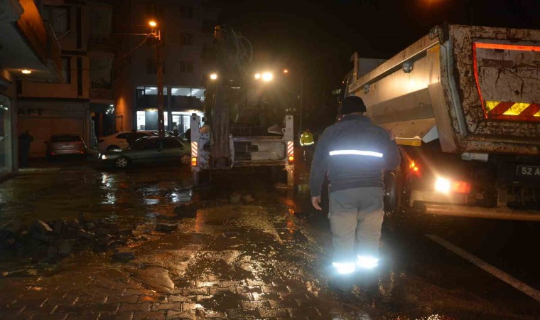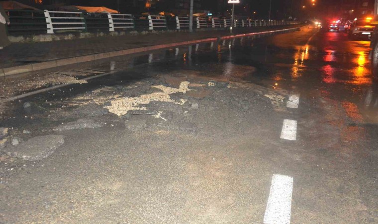 Ordu’nun Ünye ilçesinde içme suyu ana şebeke borusunun patlaması sonucu asfalt yarıldı.
