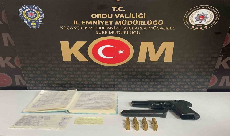 Ordu’da ise İl Emniyet Müdürlüğü Kaçakçılık ve Organize Suçlarla Mücadele (KOM) Şube Müdürlüğü ekipleri tarafından yapılan operasyonda, ‘tefecilik’ suçundan E.G. (59) ve M.K.(57) şüpheli şahıslar yakalandı. Şahısların ikametlerinde yapılan aramalarda 1 adet ruhsatsız tabanca, 12 adet 9 milimetre fişek, 1 adet borç-alacak ilişkilerine ait defter, 2 adet borç-alacak ilişkilerine ait not kâğıdı ele geçirildi.