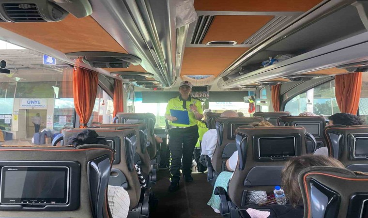 Ordu’nun Ünye ilçesinde şehirler arası otobüslerde seyahat eden yolculara emniyet kemeri uygulaması gerçekleştirildi.