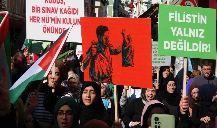 İsrail’in Gazze’de gerçekleştirdiği saldırılara tepki gösteren yüzlerce vatandaş, sloganlar eşliğinde yürüyüş gerçekleştirdi. Yoğun katılım ile düzenlenen yürüyüşte vatandaş Türk ve Filistin bayraklarını sallayarak, İsrail aleyhine sloganlar attı, tekbir getirdi. Sırrı Paşa Caddesi’nden başlayan ve protokol üyelerinin de katıldığı yürüyüş, Ceren Özdemir Meydanı’nda son buldu.