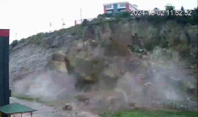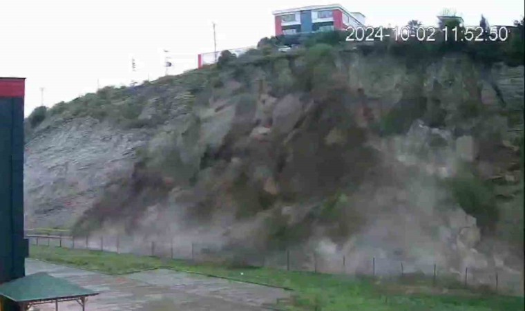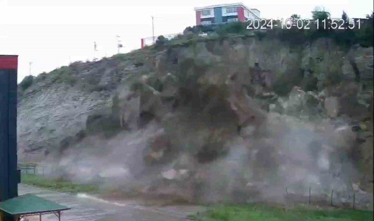Zonguldak’ın Ereğli ilçesinde Organize Sanayi Bölgesi’ne giden yol güzergahında meydana gelen heyelan anı güvenlik kamerasına yansıdı.
