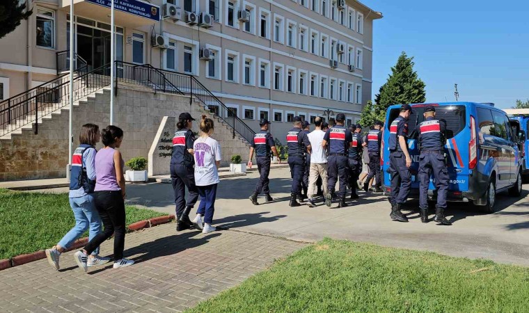 Aydın İl Jandarma Komutanlığı koordinesinde uyuşturucu satışı ve kullanımına yönelik çalışmalar aralıksız devam ediyor. Edinilen bilgiye göre Jandarma KOM Şube Müdürlüğü’nce Nazilli Cumhuriyet Başsavcılığı koordinesinde 4 aydır devam eden takipli KOM faaliyeti kapsamında yapılan teknik ve fiziki takip sonucunda Örgütlü Uyuşturucu Madde Ticareti suçunu işlediği tespit edilen 6 şüpheliye yönelik operasyon gerçekleştirildi. Yapılan 4 ayrı ara operasyonda yakalanan 2 suç örgütü üyesi tutuklanarak cezaevine gönderildi. Organize suç örgütü lideri ve diğer örgüt üyelerinin de yakalanması, suç unsurlarının ele geçirilmesi maksadıyla gerçekleştirilen ikinci operasyonda da örgüt lideri O.S.’nin de aralarında bulunduğu 4 şüpheli şahsa ait 14 ayrı adreste eşzamanlı operasyon yapıldı. Aralarında suç örgütü ile bağlantılı oldukları tespit edilen 3 şahıs ile birlikte toplam 7 şüpheli kıskıvrak yakalanarak gözaltına alındı. Adreslerde yapılan aramalarda 620 gram metamfetamin, 54 gram kubar esrar, 1 adet 7,65 mm. çapında tabanca, 3 adet uyuşturucu madde kullanma aparatı, 7 adet cep telefonu ele geçirildi. Yakalanarak gözaltına alınan toplam 7 şüpheli, işlemlerinin ardından bugün adliyeye sevk edildi.