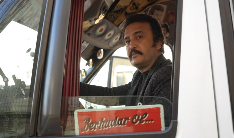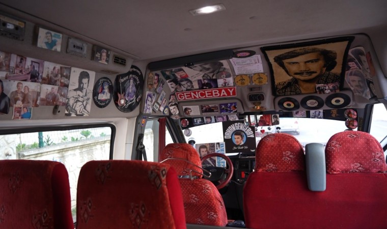 Samsun’da Orhan Gencebay’a benzerliği ile dikkat çeken minibüs şoförü Müslüm, aracının her köşesini kapladığı sanatçının fotoğrafları, afişleri, plakları ve kasetleri ile yolcularına nostaljik anlar yaşatıyor.