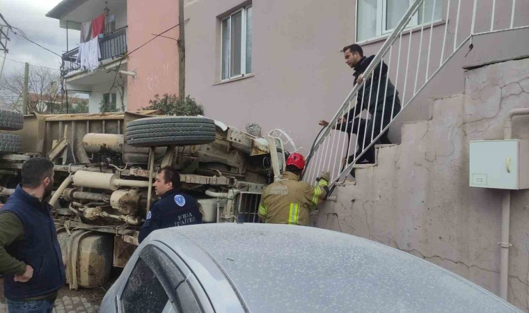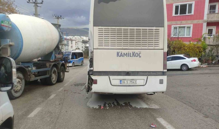 Bursa’nın Orhangazi ilçesinde, içerisinde hafriyat malzemesi yüklü Orhangazi Belediyesi’ne ait bir kamyonun frenleri boşalınca önce işçi servisine, ardından şehir içi yolcu minibüsüne çarptı. Yaklaşık 300 metre sürüklenen kamyon daha sonra bir evin duvarına çarparak devrildi.