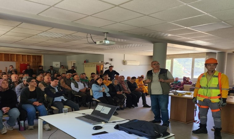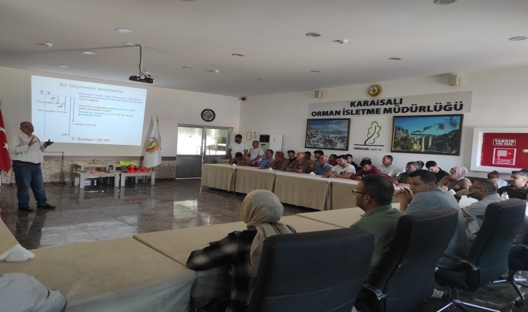 Karaisalı Orman İşletme Müdürlüğü’nde verilen eğitimde yüksekte çalışma yapılan; ormanlık alanlarda, hizmet binalarında, gözetleme kulelerinde, arazözlerde, hizmet araçlarında ve iş makinelerinde tehlike ve risklerin neler olduğu, bunlardan korunma yolları teorik ve uygulamalı olarak anlatıldı.