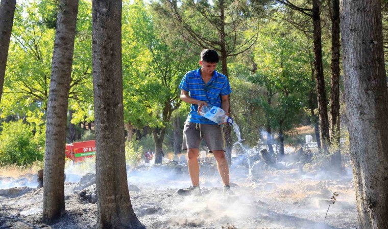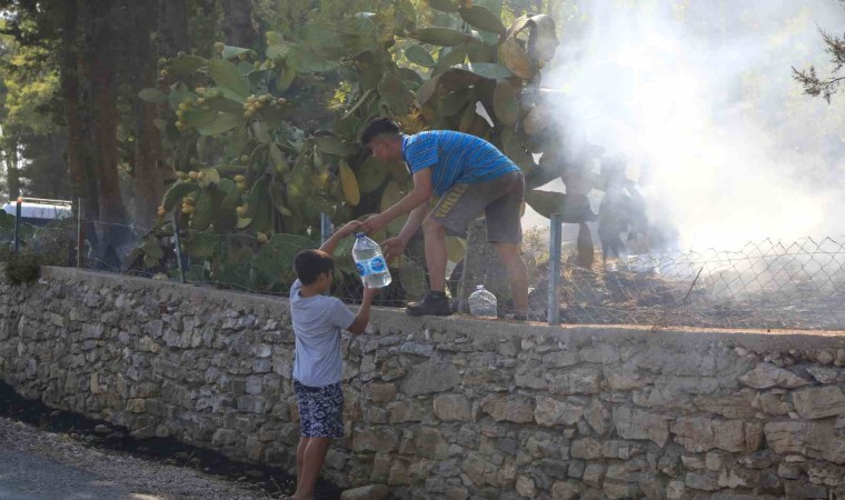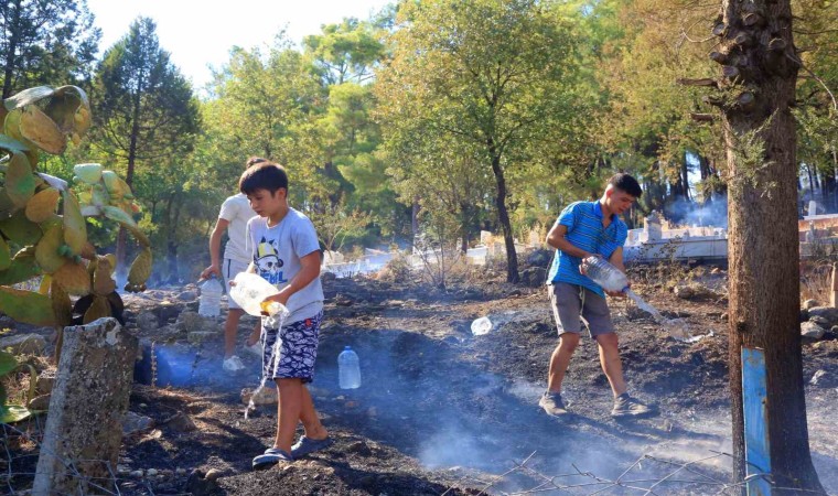 Orman Bölge Müdürlüğü ve itfaiye ekiplerinin yangını söndürme çalışmasına mahallede bulunan küçük çocuklarda ellerinde taşıdıkları su bidonları ile yardımcı olmaya çalıştı. Köy mezarlığında yanan mezarlar ve ağaçlara bidonlara çeşmeden doldurdukları su ile müdahale eden çocuklardan 12 yaşındaki Ali Eymen Küçükdemir, “Yardım etmek için yangını söndürmeye çalışıyoruz. Burada büyüklerimiz yatıyor. Çok üzüldük, hemen geldik ekiplere yardımcı olabilmek için ufak ufak yardımcı olmaya çalışıyoruz. Yapabildiğimiz kadar ağaçları kurtarmaya çalışıyoruz” dedi.
