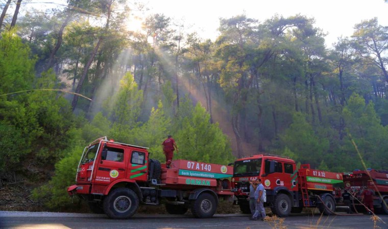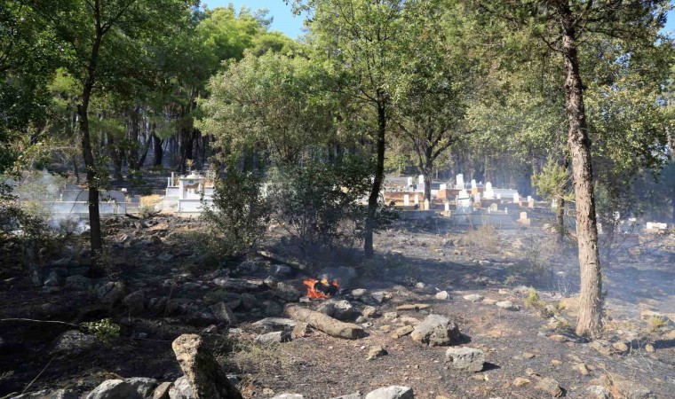 Antalya’da çıkan orman yangını havadan ve karadan yoğun müdahale ile yaklaşık 3 saatte kontrol altına alındı. Rüzgar ile birlikte birden yayılan yangında mahalledeki çocuklar köy mezarlığına da sıçrayan alevleri söndürmek için büyük bir mücadele verdi. 12 yaşındaki Eymen, "Burada büyüklerimiz yatıyor. Elimizden geldiğince zarar görmemesi için ekiplere yardımcı olmaya çalışıyoruz" dedi.