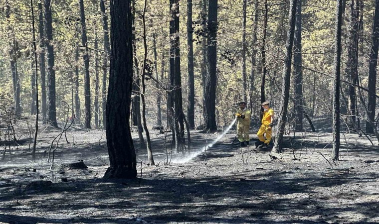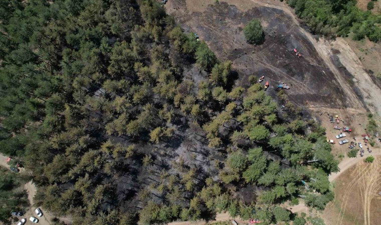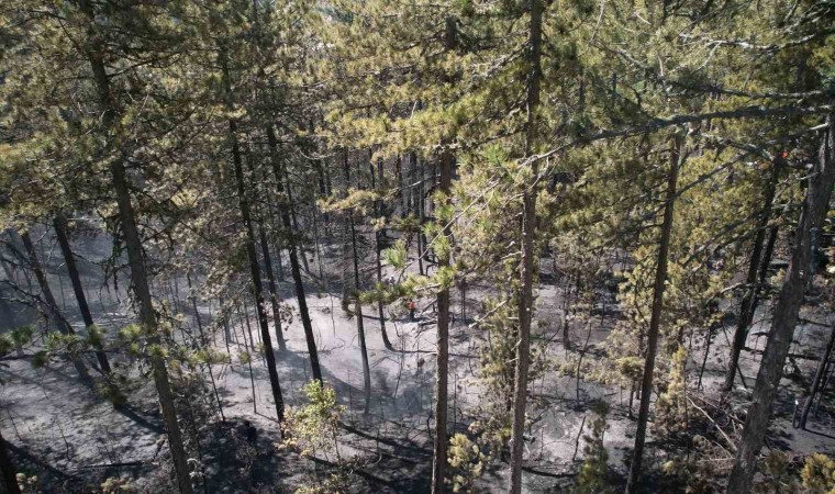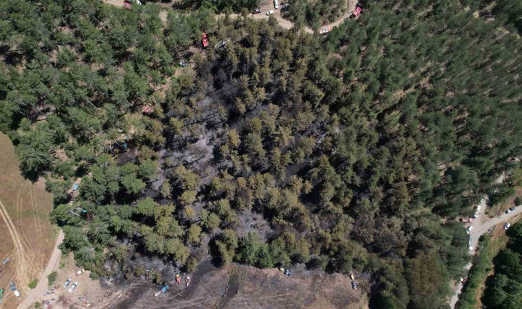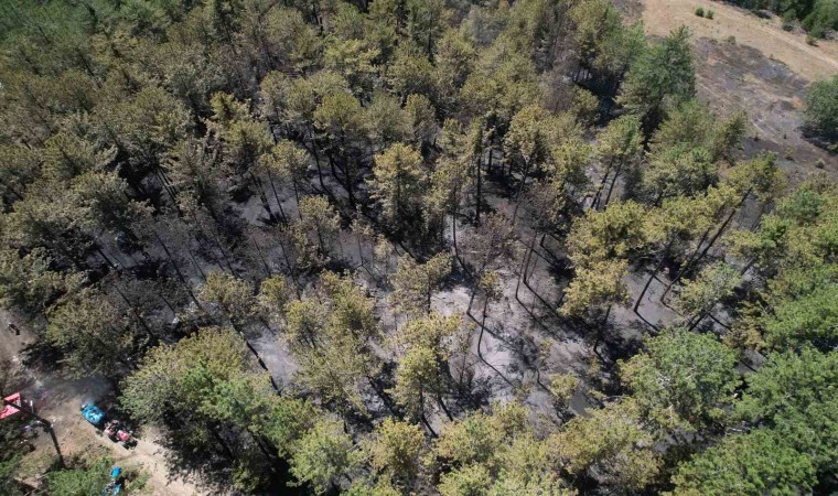 Öte yandan, yangının etkilediği ağaçlık alan dron ile havadan görüntülendi.