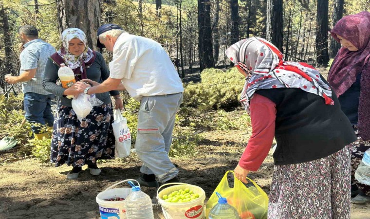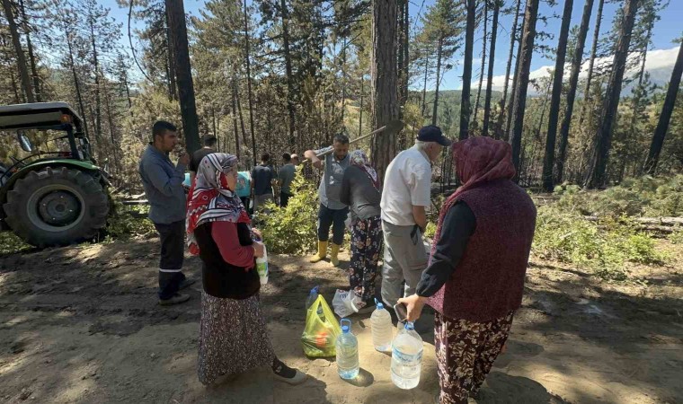 Baraklı Mahallesi’nde yaşayan köylülerden kimi kendi traktörü ile söndürme çalışmalarına destek verdi. Kimi de eline kürek alarak çalışmalara kaldı. Köylü kadınlar ise evde yaptıkları ayranlar bahçelerinden topladıkları erik ve kirazlar ile yangın bölgesine giderek ekiplere ikramda bulundu.