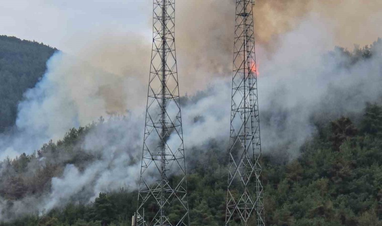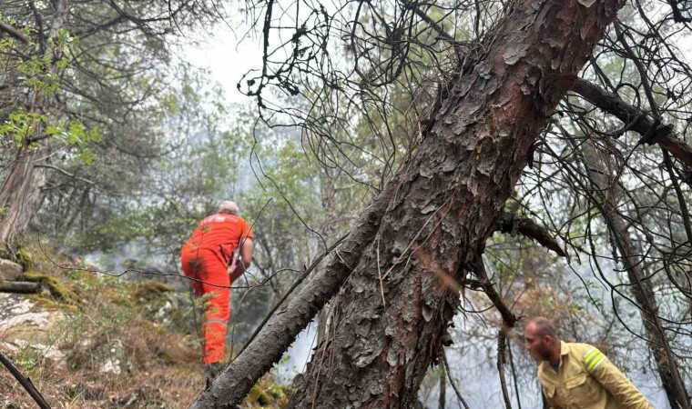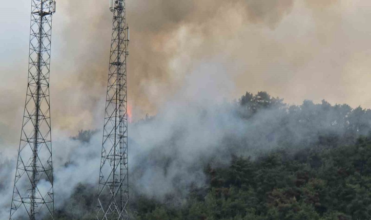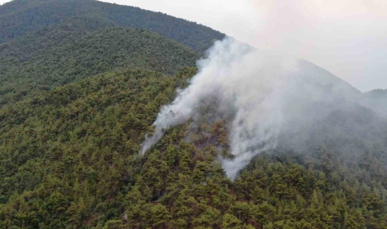 Yangın dron ile görüntülenirken ekiplerin bölgedeki çalışmaları sürüyor.