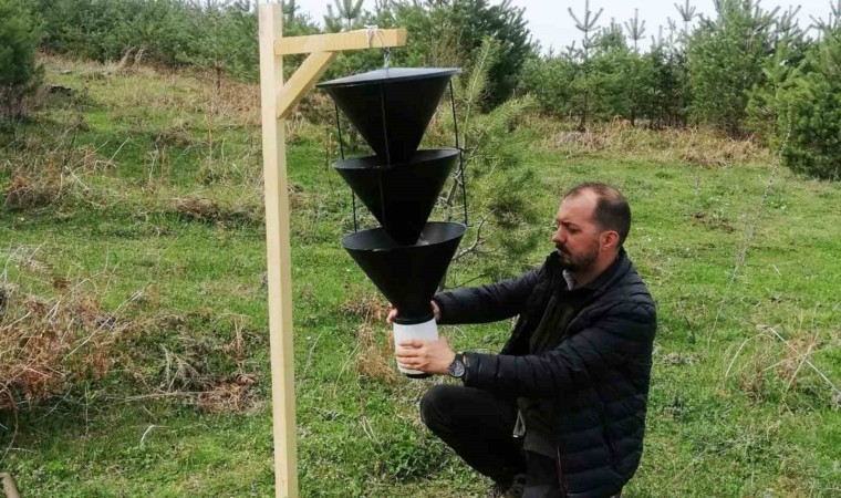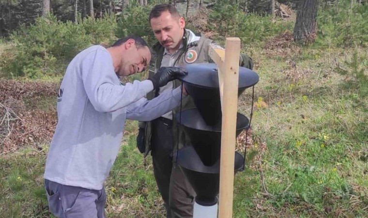 Samsun’un Vezirköprü ilçesinde Orman İşletme Müdürlüğü çam ağaçlarına zarar veren böceklere karşı biyoteknik mücadele yapıyor.