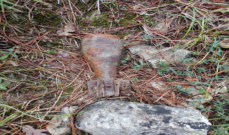 Bolu’da ormanlık alan içerisinde mantar toplarken bir vatandaş, küflenmiş ve patlamamış halde havan topu mermisi buldu. Jandarma tarafından mermi, kontrollü olarak imha edildi.