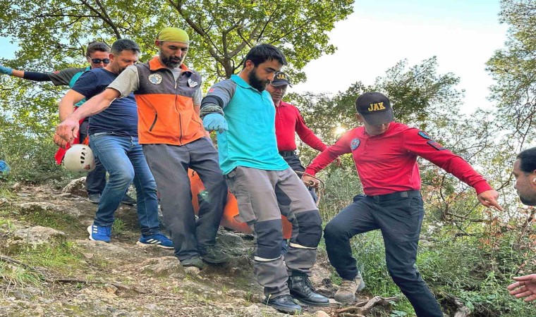 Muğla Fethiye ilçe Kabak koyunda yürüyüş yaparken ayak bileğini büken vatandaş için Jandarma JAK, UMKE, AFAD ekipleri seferber oldu.