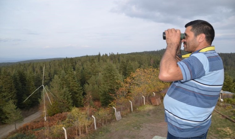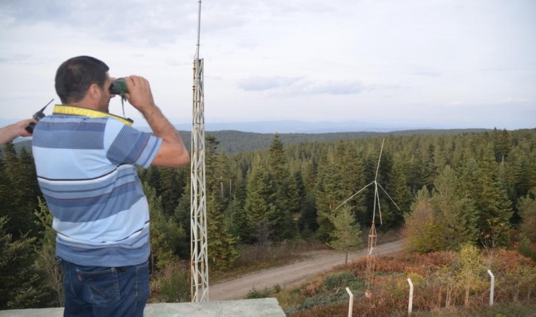 Kastamonu Orman Bölge Müdürlüğüne bağlı Taşköprü Orman İşletme Müdürlüğü yangın gözetleme kulesi görevlileri, ellerindeki dürbünle ormanlık alanda gördükleri en küçük dumanı merkeze bildiriyor.