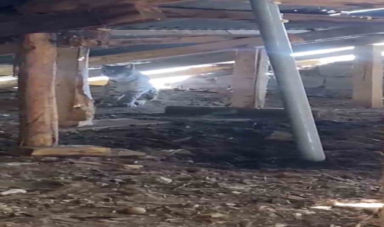Sivas’ın Zara ilçesinde Ormanın hayaleti olarak bilinen vaşak, bir ahırın çatı arasında görüntülendi.