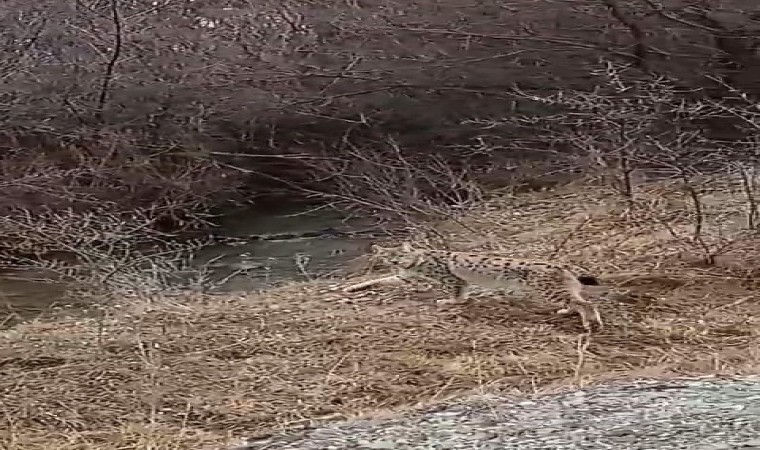 Köylere göreve gidenler kırsal kesimde dere kenarında vaşağın olduğunu fark ederek hemen cep telefonunu çıkardı. Telefon kayda girdikten bir süre sonra vatandaşları fark eden vaşak dereden karşıya geçip çalılığın içinde gözden kaybolurken o anları kayıt altına alındı.