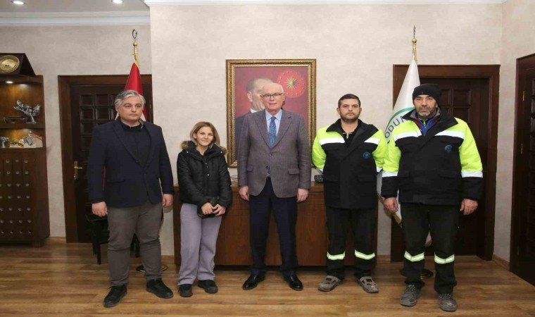 Olayı öğrenen Odunpazarı Belediye Başkanı Kazım Kurt, çantanın sahibi Esra Çelik, Temizlik İşleri Personeli Okan Arslan ve ekip arkadaşlarını makamında ağırladı. Temizlik İşleri personeline teşekkür eden Başkan Kurt, “Her zaman böyle olun. Odunpazarı Belediyesi çalışanlarının dürüstlüğüne, onuruna hiç kimsenin bir şey deme şansı yok. Bugün, bunu bir kez daha ispat ettiniz. Tekrar kutluyorum sizi. Müdüre de teşekkür ediyorum. Doğru iş yapalım. Biz vatandaşımızın rahat etmesi için varız. Bu da onun küçük bir parçası” dedi.