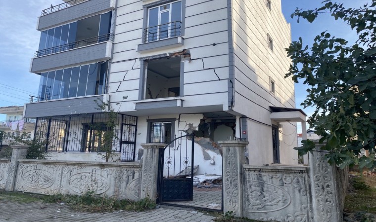Adıyaman’da, orta hasarlı bir binanın bahçe kapısı çalındı.