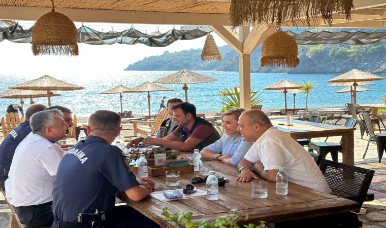 Mergenli Muhtarı Mustafa Çelik’in de katıldığı Ortaca’nın en güzel koylarından Kargıcak ve Aşı koylarını işleten firmalar ile bir araya gelen Kaymakam Uçar, Başkan Alim Uzundemir, işletmelerin uygulamaları, vatandaşlardan gelen talep ve şikayetler ile ilgili olarak yerinde incelemelerde bulunarak işletme yetkilileri ile görüştü.