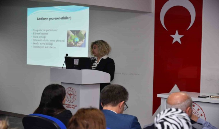 Çevre Mühendisi Ezgi Kazan Trabzon İl Sağlık Müdürlüğü personeline yaptığı sunumda ‘Sıfır Atık’ konusunun atıkların ilk üretildiği mekânlarda, yani kaynağında başladığına vurgu yaparak şöyle konuştu: