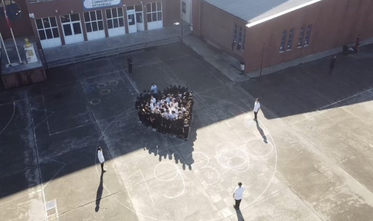 Yaklaşık 123 öğrenci ve 12 öğretmeninin desteğiyle okul bahçesinde, Atatürk’ün vefatının 85’inci yılı dolayısıyla ’09.05’ ve ’1938’ koreografisi oluşturdu.