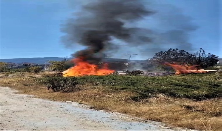 Ekiplerin hızlı müdahalesiyle yangın büyümeden kontrol altına alınıp söndürülürken, alev alev yanan alan cep telefonu kamerası ile görüntülendi.