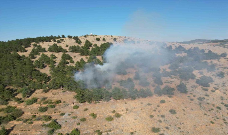 Tokat’ta ormanlık alanda başlayan örtü yangınını bir kişi, itfaiye ekipleri gelene kadar ayağı ile söndürmeye çalıştı.