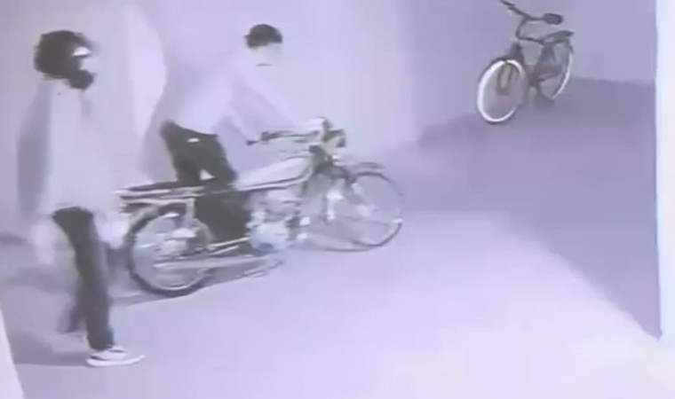 Aksaray’da bir apartmanın garajından motosikleti çalan örtülü hırsızlar anbean güvenlik kamerasına yansırken polisin operasyonuyla yakalanan 2 hırsız tutuklandı.