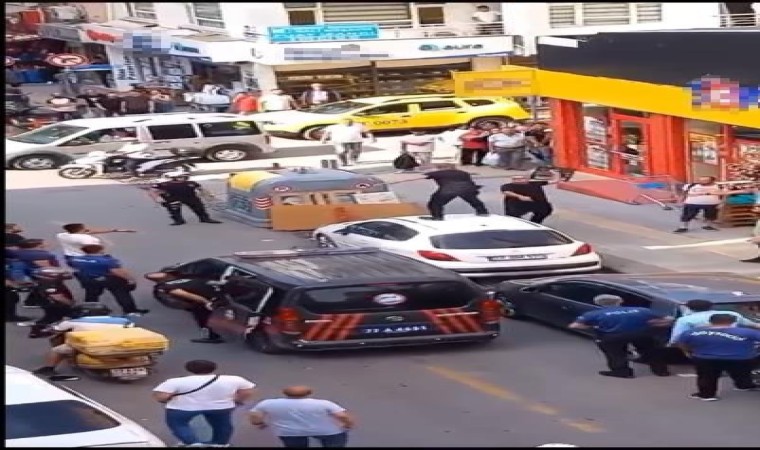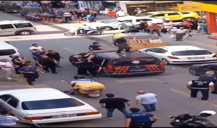 Cumhuriyet Caddesi Ay Sokak mevkiinde bir grup arasında tartışma çıktı. Yaşanan tartışma sonrasında caddede park halinde bulunan bir aracın üstüne çıkan B.Ş, ortalığı adeta birbirine kattı. Aracın yanına yaklaşanlara biber gazı sıkan B.Ş’yi otomobilin üzerinden indirmek isteyen bir vatandaş ise meyve kasası fırlattı. B.Ş. daha sonra üzerinde bulunduğu otomobilden olaya müdahale için gelen yunus ekiplerine ait polis otosunun üzerine adeta örümcek adam gibi zıpladı. Şüpheliye polisler biber gazıyla müdahale etti. Polis aracının üzerinden indirilen B.Ş. gözaltına aldı. Herkesin şaşkın bakışları arasında gerçekleşen olay çevredeki vatandaşlar tarafından anbean cep telefonu kameralarıyla kaydedildi.