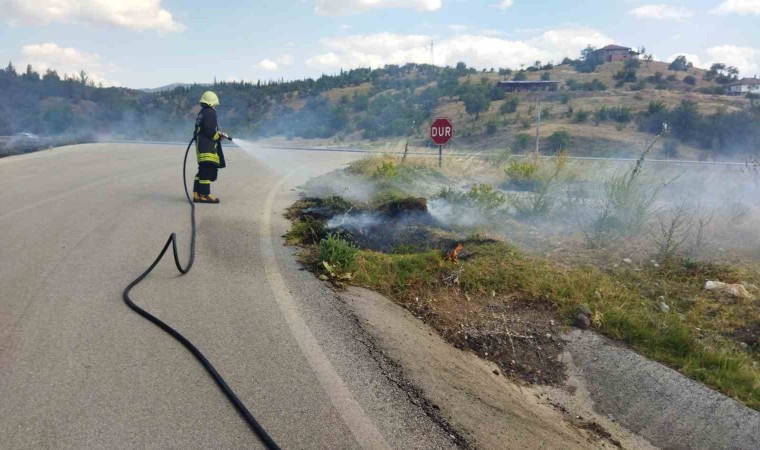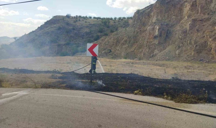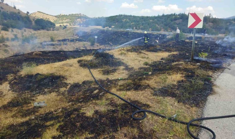Çorum’un Osmancık ilçesi D-100 karayolu kenarında çıkan örtü yangını çamlık alana sıçramadan söndürüldü.