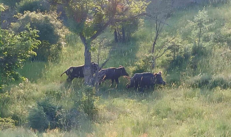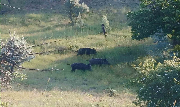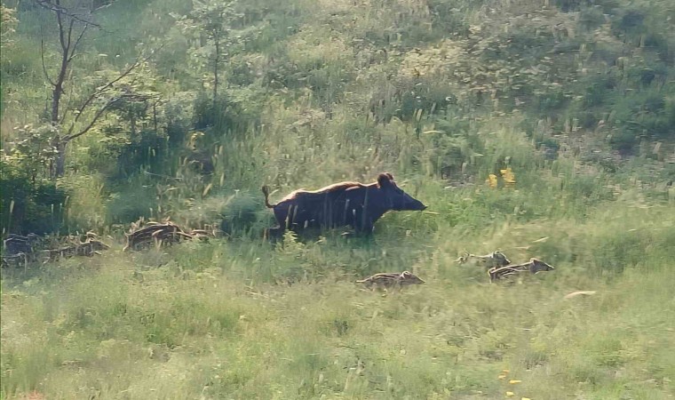 Çorum’un Osmancık ilçesinde domuz sürüsü görüntülendi.