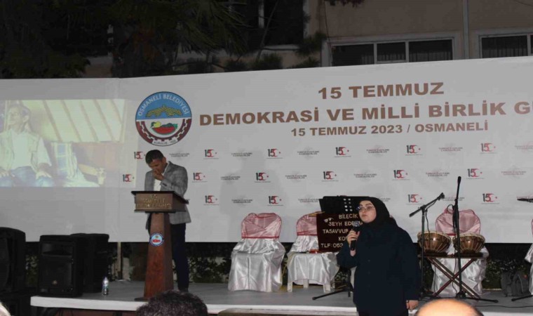 Osmaneli Kaymakamlığı ve Osmaneli Belediyesi tarafından 15 Temmuz Demokrasi ve Milli Birlik Günü anma etkinlikleri dahilinde, Osmaneli Belediye Başkanlığı parkında saat 21:30 da program düzenlendi. Osmaneli Kaymakamı Yüksel Ünal, Belediye Başkanı Münür Şahin ve beraberinde, ilçe protokolü, şehit yakınları, gaziler ve çok sayıda vatandaşın katıldığı 15 Temmuz Demokrasi ve Milli Birlik Günü anma programı İstiklal Marşı’nın okunmasının ardından Rüstem Paşa Cami İmam Hatibi Kadir Sungur tarafından Kur’anı Kerim okumasıyla başladı. Programda, 15 Temmuz belgeseli sinevizyon gösterimi yapıldı. Öğrenciler tarafından günün anlamına dair şiirler okundu. Belediye Başkanı Münür Şahin ve Kaymakam Yüksel Ünal günün anlam ve önemini belirten konuşmalarını yaptı. Tasavvuf grubu tarafından ilahi ve kaside dinletileri icra edildi. Program daha sonra Ayşe Göllü Camii imam hatibi Zafer Ünal tarafından, 15 Temmuz günü vatanımızı ve kutsal bayrağımızı canı pahasına koruyan şehitlerimiz ve gazilerimiz dualarla yad edildi. Vatanımızın birliği ve beraberliği için dualar okunduktan sonra İlçedeki camilerden aynı anda salaların verilmesiyle program sona erdi. Düzenlenen programa Osmaneli Kaymakamı Yüksel Ünal, Belediye Başkanı Münür Şahin, Cumhuriyet Savcısı İsmail Küçükdağ, İlçe Jandarma Komutan vekili Kıdemli Başçavuş Mustafa Toy, Emniyet Müdür vekili komiser Bünyamin Şahin, kurum müdürleri, siyasi parti temsilcileri, sivil toplum kuruluşları, şehit yakınları, gaziler ve Osmaneli halkı katıldı.