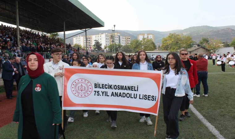 Osmaneli ilçe stadyumunda gerçekleşen Cumhuriyet Bayramı kutlamaları, Osmaneli Kaymakamı Yüksel Ünal ve Belediye Başkanı Münür Şahinin, öğrencilerin ve halkın bayramını kutlamasıyla başladı. Saygı duruşunda bulunulması ve İstiklal Marşı’nın okunmasının ardından daha sonra Kaymakam Yüksel Ünal günün anlam ve önemini belirten bir konuşma yaptı.