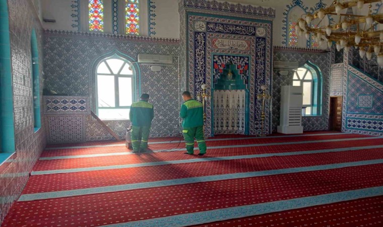 İlçe genelindeki tüm camilerde yürütülen temizlik çalışması çerçevesinde camilerdeki halılar, halı yıkama makinesi ve deterjanlı suyla yıkanırken; pencere, kapı, mihrap, minber, kürsü ve ayakkabılıklar büyük bir titizlikle siliniyor. Yüksek teknolojiye sahip makinelerle 90 derece sıcaklığa varan su ve özel deterjan kullanılarak yerinde yıkanan ibadethane halıları, aynı zamanda bakterilere karşı da dezenfekte ediliyor. Yıkandıktan sonra güçlü vakum sistemiyle kirli suyun çekilerek tahliye edildiği uygulamada ibadethaneler, daha hijyenik bir hale geliyor. Ayrıca cami içleri, şadırvanları ve ortak kullanım alanları ekipler tarafından dezenfekte ediliyor.