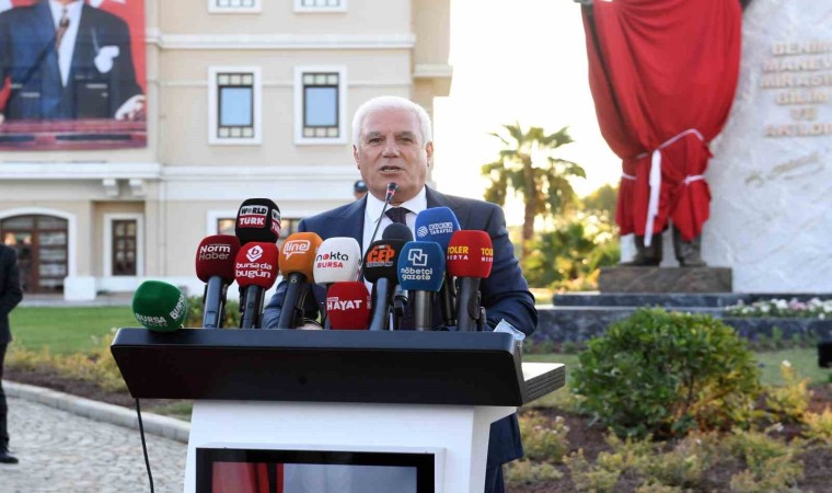 Açılış töreninde konuşan Osmangazi Belediye Başkanı Erkan Aydın, 30 Ağustos gibi önemli bir günde önemli bir açılışa ev sahipliği yapmanın gururunu yaşadıklarını belirterek, “Belediyemizin bahçesinde Osman Gazi heykeli vardı. Osman Gazi de bizim önemli bir değerimiz. Belediyenin bahçesindeki Osman Gazi heykeli eliyle bir yeri işaret ediyordu. Dedik ki, işaret ettiği yerde Türkiye Cumhuriyeti’nin kurucusu Gazi Mustafa Kemal Atatürk olması gerekir. Bu ana fikirden yola çıktık, Atatürk’ü Osmanlı Devleti’nin kurucusunun işaret ettiği yerde Türkiye Cumhuriyeti’nin kurucusu olarak burada ölümsüzleştirmeye karar verdik, emeği geçenlere ayrı ayrı teşekkür ediyorum” dedi.