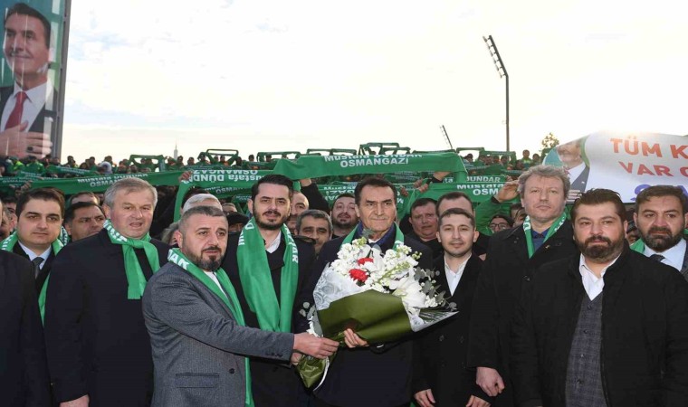 Osmangazi’nin adını bugüne kadar yaptıkları hizmetlerle Türkiye ve dünyaya duyurduklarına vurgu yapan Dündar, “Sizlerin yapmış olduğu hizmetler, bizleri yeniden Osmangazi’de 4’üncü defa aday olmamızı sağladı. Sizlere çok teşekkür ediyorum. Yaptığımız hizmetlerin tümünde sizlerin alın teri ve emeği var. Türkiye’nin konuştuğu Osmangazi Meydanı’ndayız. Bu meydan sizlerin alın teri sonucu ortaya çıktı.” diye konuştu.