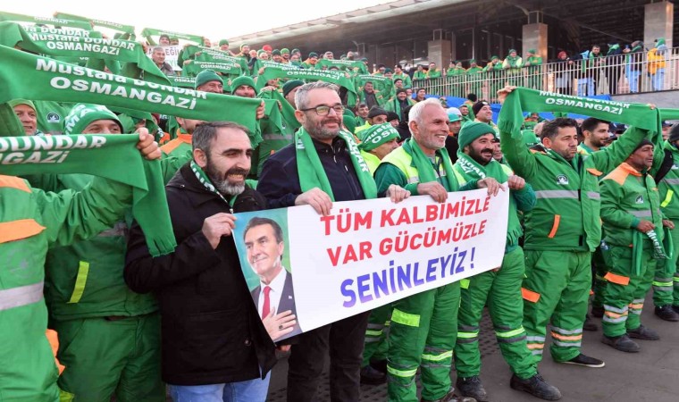 Cumhurbaşkanı Recep Tayyip Erdoğan tarafından Tofaş Spor Salonu’ndaki Bursa belediye başkanları aday tanıtımında yeniden adaylığı açıklanan Osmangazi Belediye Başkanı Mustafa Dündar’a belediye çalışanları sürpriz karşılama programı düzenledi. Bursa’nın son dönemde en önemli vizyon projesi olan Osmangazi Meydanı’nı dolduran coşkulu personel, meşaleler ve tezahüratlar eşliğinde karşıladıkları Dündar’ı omuzlara alarak sevgi gösterisinde bulundu.