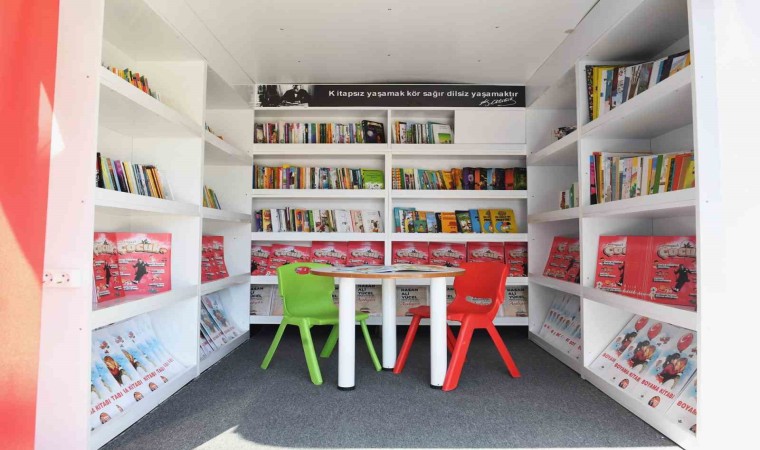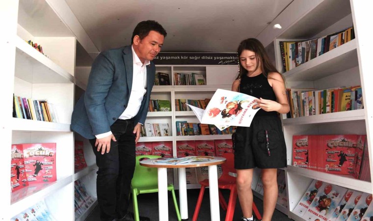 Konuşmaların ardından Gezici Kütüphane’nin içerisine giren Başkan Aydın, kütüphanenin raflarından seçtiği kitabı, törene katılan bir çocuğa verdi.
