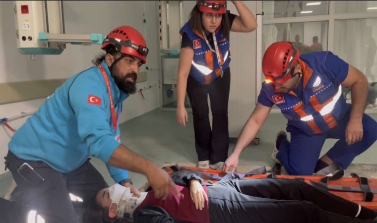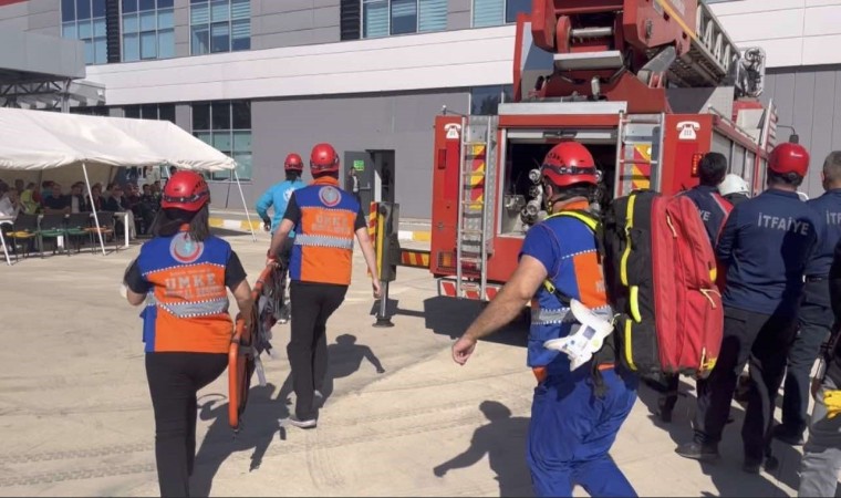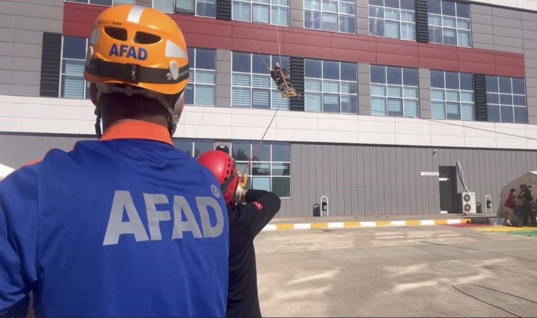 Osmaniye’de Devlet Hastanesi’nde, Hastane Afet ve Acil Durum Planı (HAP) çerçevesinde, deprem ve yangın tatbikatı gerçekleştirildi. Tatbikat senaryosu gereği bölgede meydana gelen 6,2 büyüklüğündeki deprem nedeniyle hastaneye sevk edilen AFAD, UMKE ve itfaiye ekipleri, binadakileri tahliye etti. Senaryo gereği depremle birlikte hastane başhekimi tarafından mor kod ilan edilerek, hastane afet yönetimi devreye alındı. Tatbikat sırasında, jeneratörler devreye girdi, yapısal hasar tespiti yapıldı ve hastalar triyaj alanlarına taşındı. Asma tavan çökmesi ve yangın gibi ek olaylar senaryoya dahil edilerek, yangın söndürme ve kurtarma ekipleri acil müdahalede bulundu. Ekipler, çatıda mahsur kalan kişiyi halat yardımıyla kurtardı, yıkılan binadan çıkarılan yaralıları ambulanslara taşıdı.