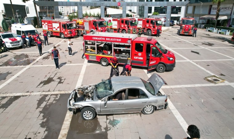 Osmaniye Belediyesi İtfaiye Müdürlüğü tarafından düzenlenen trafik kazasında yaralı kurtarma tatbikatı gerçeği aratmadı. Yangın söndürme çalışması ve itfaiye erlerinin yangın merdiveninden halatla inişleri de öğrenci ve vatandaşlar tarafından ilgiyle takip edildi.